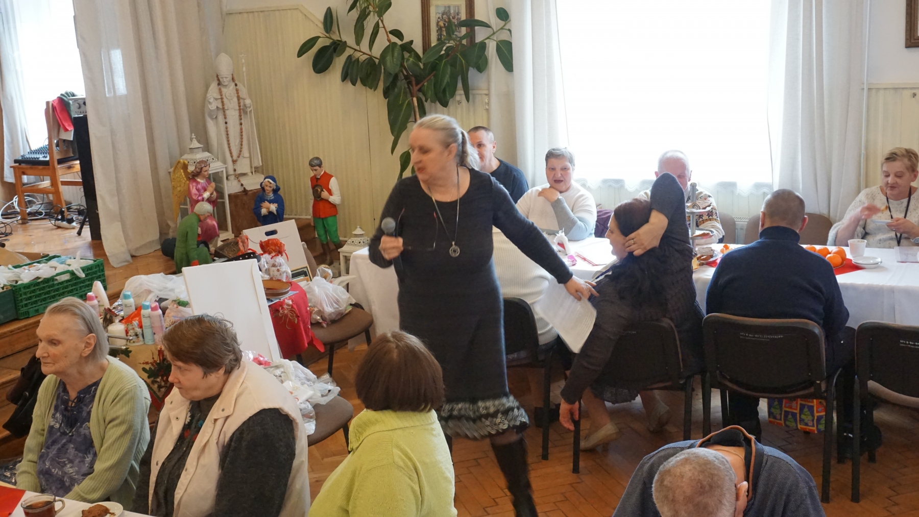 W dniu 25.01.2023r w Naszym Domu odbyły się Jasełka Bożonarodzeniowe. Spotkanie rozpoczął Dyrektor Domu, Pan Tomasz Smółka, serdecznie witając wszystkich zaproszonych gości. Przyjęcie rozpoczęło się przygotowywanym z wielką troską przedstawieniem jasełkowym, wykonanym przez naszych bardzo zaangażowanych w ów projekt mieszkańców. Po wzruszającym przedstawieniu i gromkich brawach wszyscy zasiedli do wspólnego kolędowania, które tradycyjnie odbyło się przy akompaniamencie Pana Dyrektora i Kierownika działu Opiekuńczo-Terapeutyczno-Medycznego. W atmosferze iście rodzinnej, zarówno personel, mieszkańcy domu jak i przybyli goście oddając się rozmowom, zasiedli do przygotowanego na tą okazję poczęstunku. Kolejną atrakcją tegoż spotkania, był przygotowany przez Grupę Modlitewną Odnowy w Duchu Świętym działającej przy klasztorze Karmelitów Bosych w Czernej, konkurs Bożonarodzeniowy dla mieszkańców oraz pracowników domu, w którym nie zabrakło pięknych nagród. Ten szczególny dzień, będący kolejną okazją do integracji na długo zapadnie Nam wszystkim w pamięci. Chcemy podkreślić, że jesteśmy bardzo dumni z naszych mieszkańców, którzy wcielając się w przydzielone im rolę zaistnieli na scenie, z której komunikując się dali publiczności poznać zarówno siebie jak i przeżywane przez siebie emocje. Jeszcze raz dziękujemy Grupie Modlitewnej za przybycie oraz przygotowanie specjalnie dla wszystkich Nas wspaniałej zabawy.