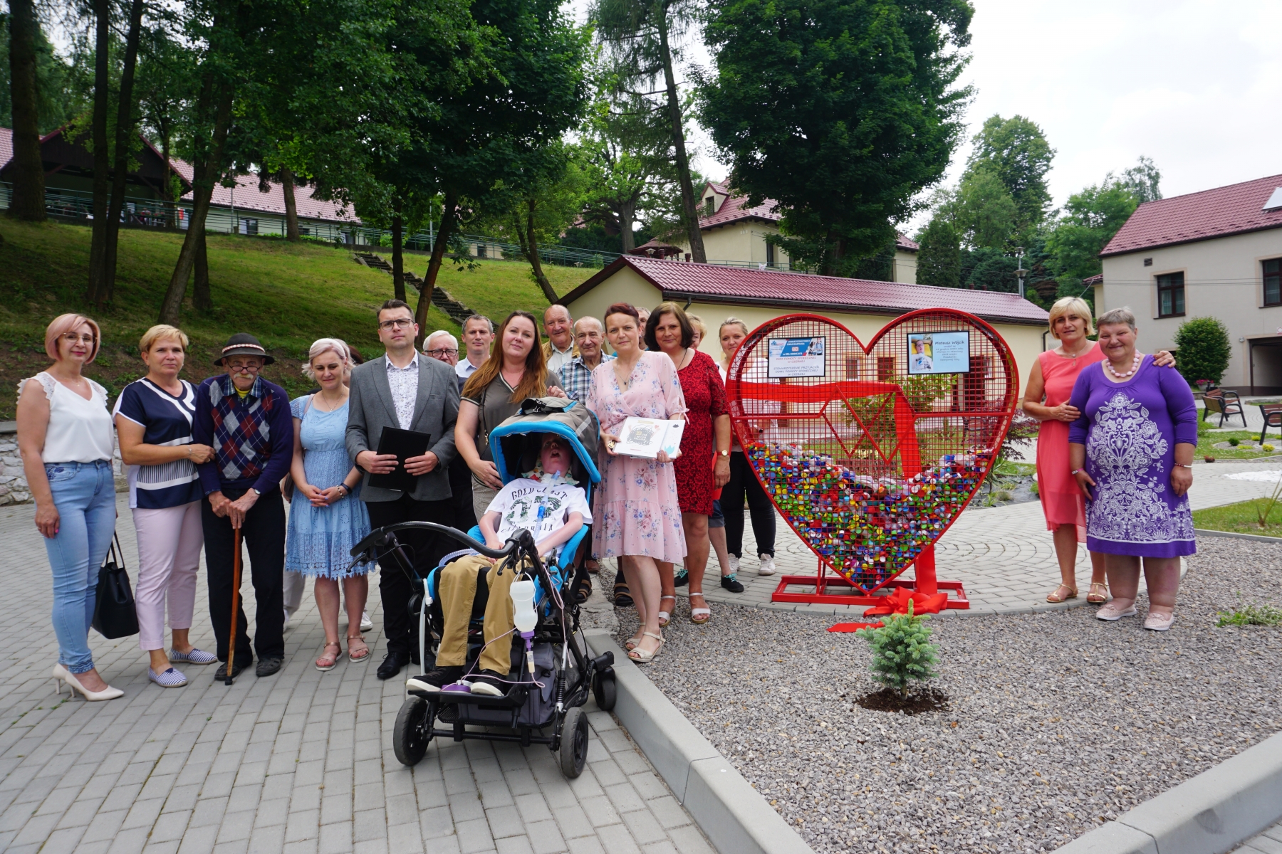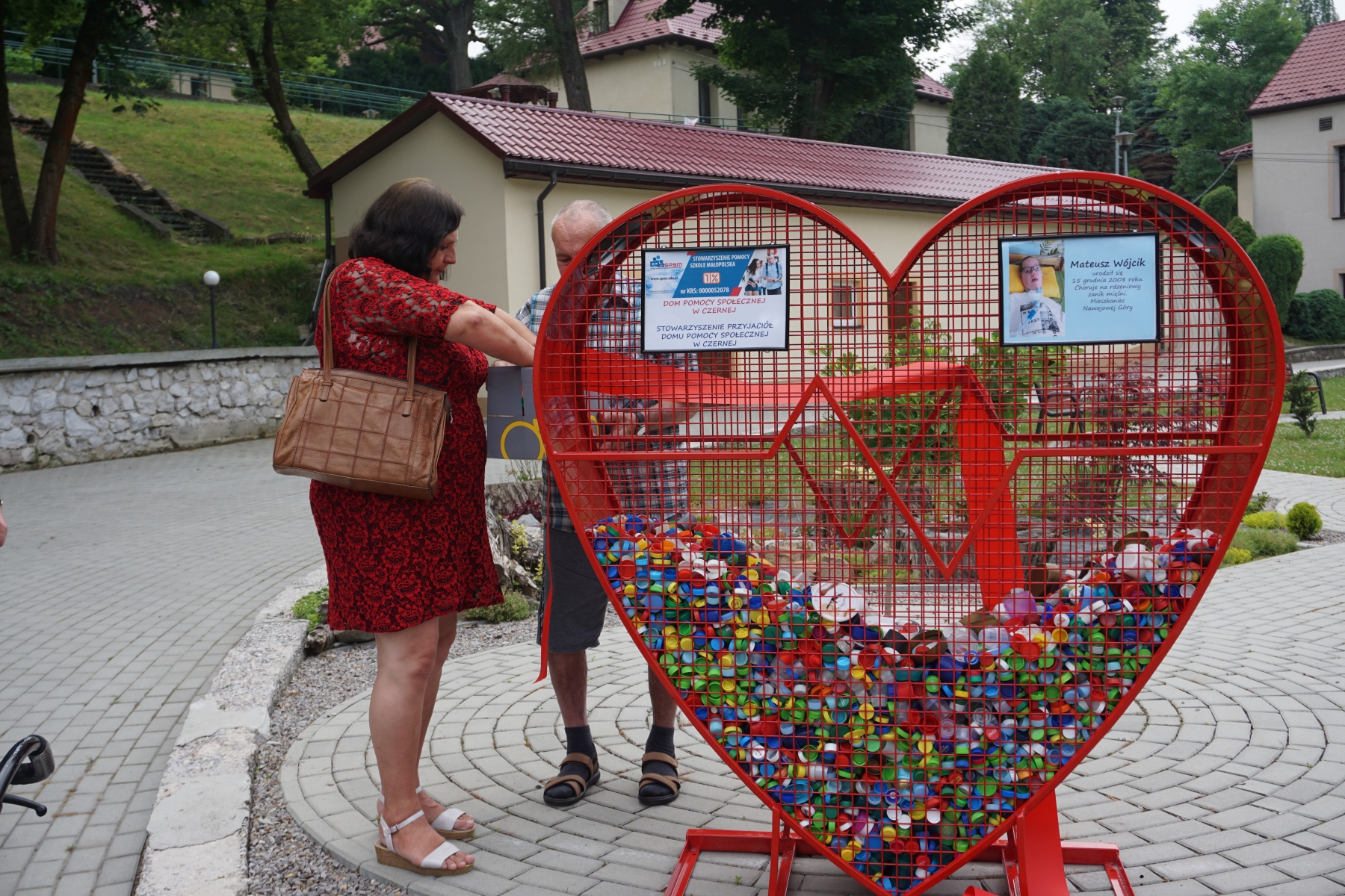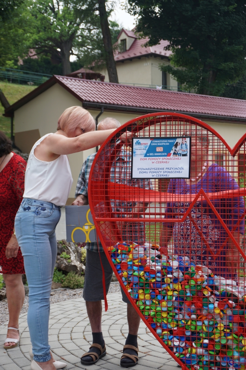 Z inicjatywy Pracowników Naszego Domu, zostało zakupione Serce (pojemnik na nakrętki). Zakup został sfinansowany przez Stowarzyszenie Przyjaciół Domu Pomocy Społecznej w Czernej. Celem zbiórki  jest pomoc 13- letniemu Mateuszowi Wójcikowi , mieszkańcowi Nawojowej Góry, chorującemu na rdzeniowy zanik mięśni, podopiecznemu Stowarzyszenia Pomocy Szkole Małopolska. Uroczyste otwarcie odbyło się 23 czerwca na którym Dyrektor Domu Pan Tomasz Smółka przywitał zaproszonych gości: Panią Katarzynę Wójcik wraz z synem Mateuszem i jego dziadkiem, Prezesa Stowarzyszenia Pomocy Szkole Małopolska Pana Bohdana Piotrowicza, Panią Marzenę Banaczyk-Niemiec Dyrektor Szkoły Podstawowej w Czernej, Panią Joannę Smółkę Sołtys Wsi Czerna, Mieszkańców i pracowników Naszego Domu. Po przywitaniu przez Dyrektora Domu, Pani Katarzyna uroczyście przecięła wstęgę na Sercu i tym samym rozpoczęła zbiórkę w którą chcemy zaangażować Naszych Mieszkańców, a także społeczność lokalną z terenu Gminy Krzeszowice. Pojemnik w kształcie serca jest symboliczny. Przypomina o sercu, które mamy i powinniśmy mieć dla najbardziej potrzebujących. Niewiele jest trudniejszych w życiu rzeczy, niż nieuleczalna choroba dziecka, dlatego pomagamy i zachęcamy mieszkańców Naszej Gminy  do pomagania – także w taki sposób.