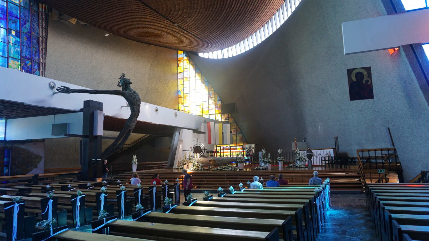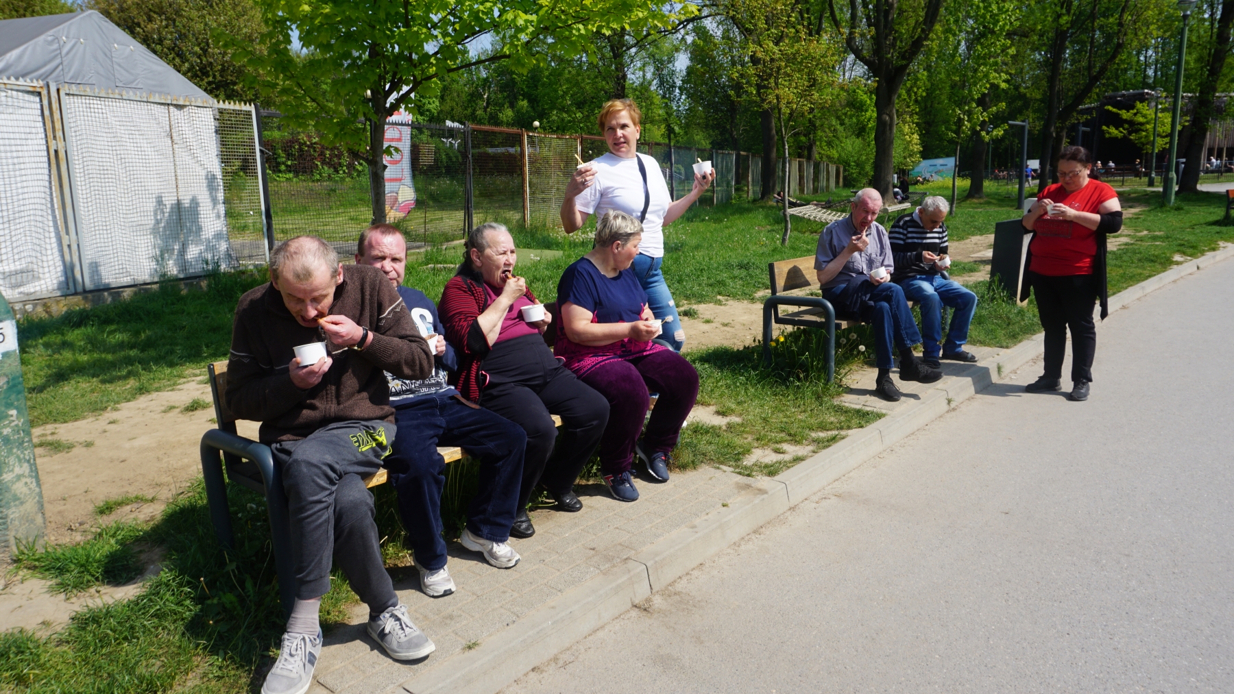 W dniu dzisiejszym, postanowiliśmy wzmocnić system odpornościowy Naszych Mieszkańców, udając się na wycieczkę do tężni solankowej nad Zalewem Nowohuckim w Krakowie. To pierwszy tego typu, ogólnodostępny obiekt w tym mieście. Celem głównym naszej wyprawy, było korzystanie z dobrodziejstw aerozolu wód solankowych, spływających po specjalnie ukształtowanych gałązkach tarniny. Spacer mieszkańców wokół tężni, był okazją do wdychania, jakże korzystnego dla zdrowia jodu i innych bardzo ważnych dla nas mikroelementów. To bardzo prosty sposób, na podniesienie odporności i oczyszczenie naszych organizmów. Do spaceru po tężni, nie potrzebne były nam wielkie przygotowania – wystarczył nam wygodny strój i dobry nastrój 🙂 Kolejnym punktem, na mapie Naszej wycieczki, był wybudowany wg projektu Wojciecha Pietrzyka pierwszy kościół w robotniczej dzielnicy Nowej Huty – Arka Pana, w której to, Nasi Mieszkańcy mogli w skupieniu i ciszy oddać się modlitwie. Natomiast zwieńczeniem naszej wycieczki, był odpoczynek nad Zalewem Nowohuckim nad, którym w związku z wyśmienitą pogodą wszyscy zakosztowali tamtejszych lodów.