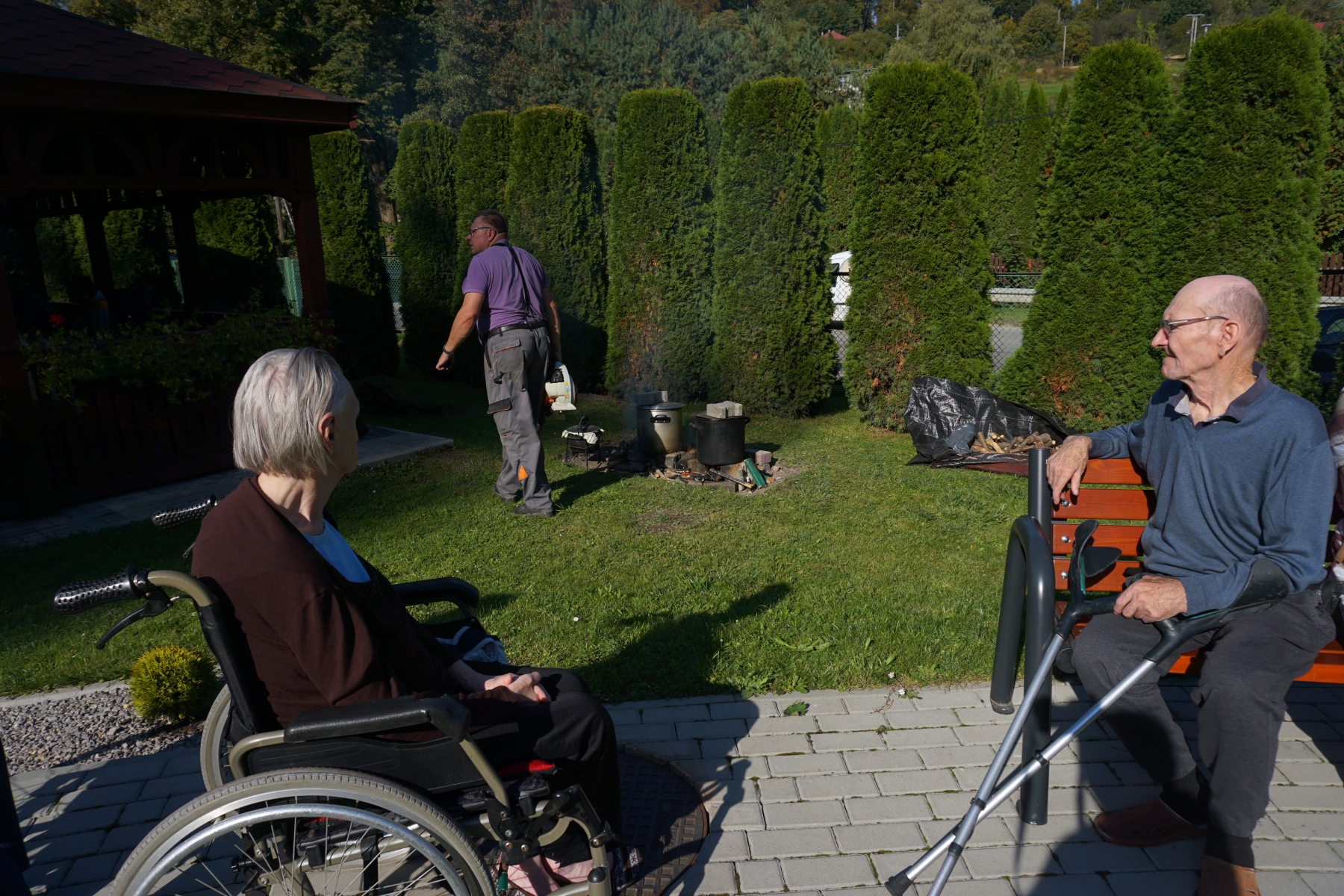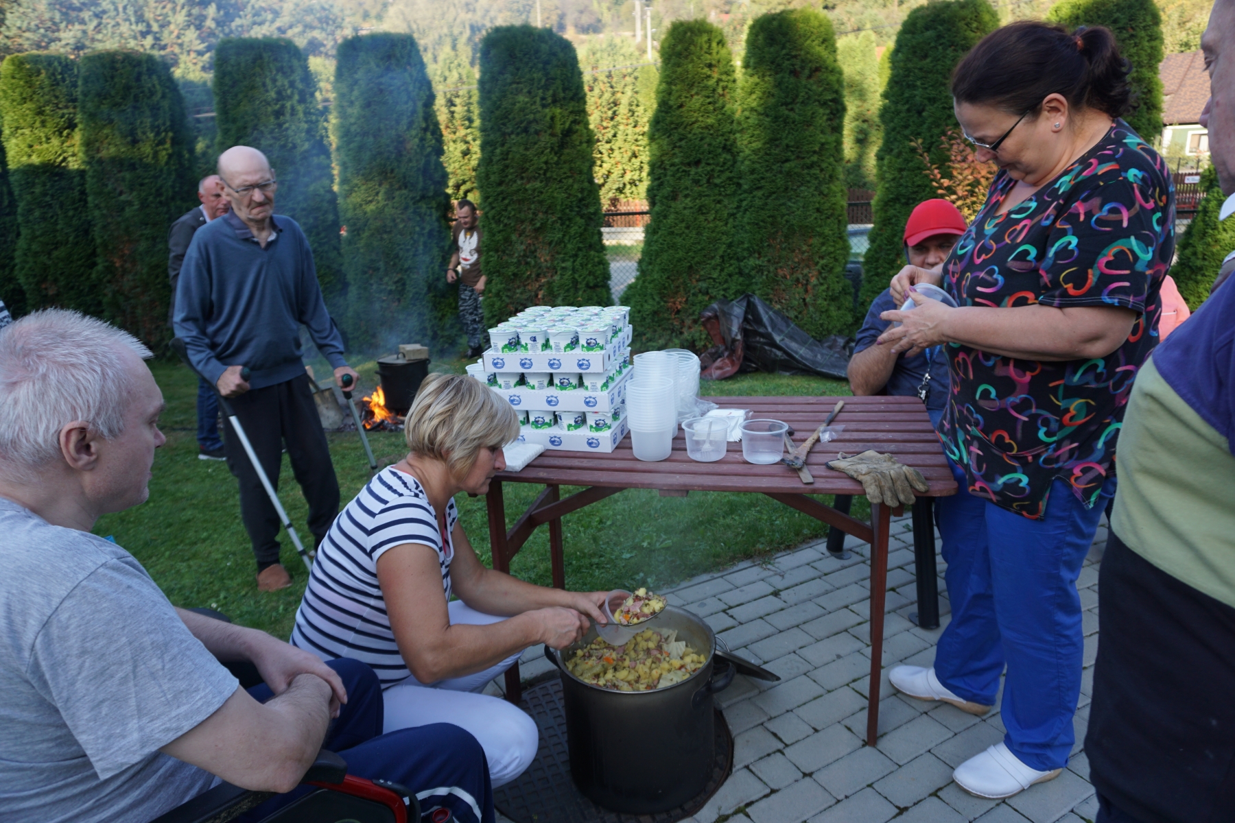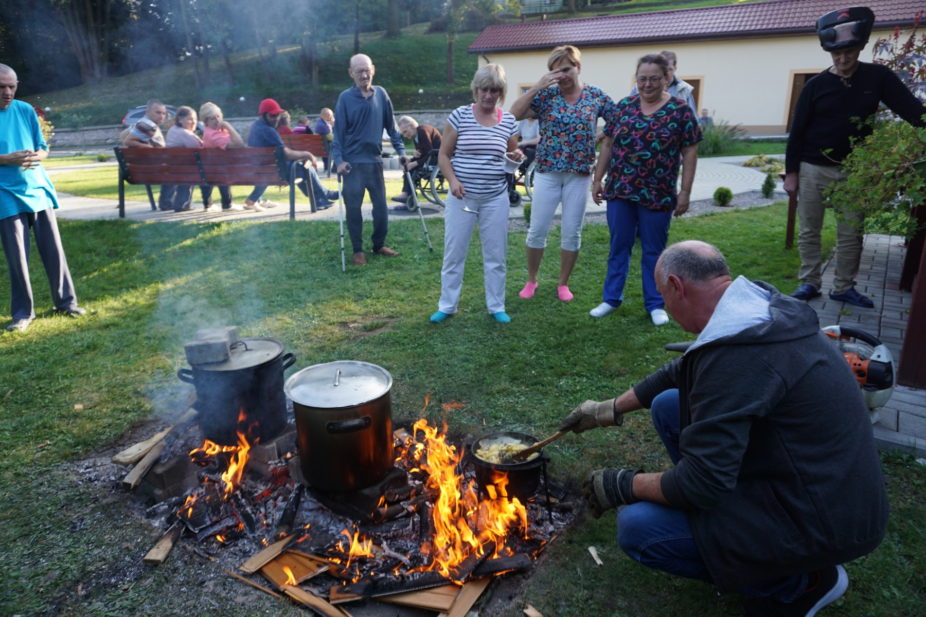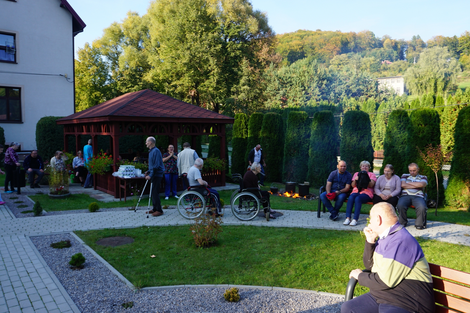 Dnia 04.10.2021 Nasi Mieszkańcy w godzinach popołudniowych, korzystając z uroków pięknej jesieni spotkali się na terenie rekreacyjnym Naszego Domu. Spotkanie integracyjne odbyło się pod hasłem „ Zakończenie lata – dzień pieczonego ziemniaka”. Nasi podopieczni przy muzyce relaksowali się, biesiadowali oraz delektowali wspólnie upieczonymi ziemniakami. To co w tym dniu było najważniejsze, to urozmaicony i co dla Nas bezcenne wspólnie spędzony czas. Dodatkowo iście letnia pogoda sprawiła, że imprezę tą możemy zaliczyć do podwójnie udanych.